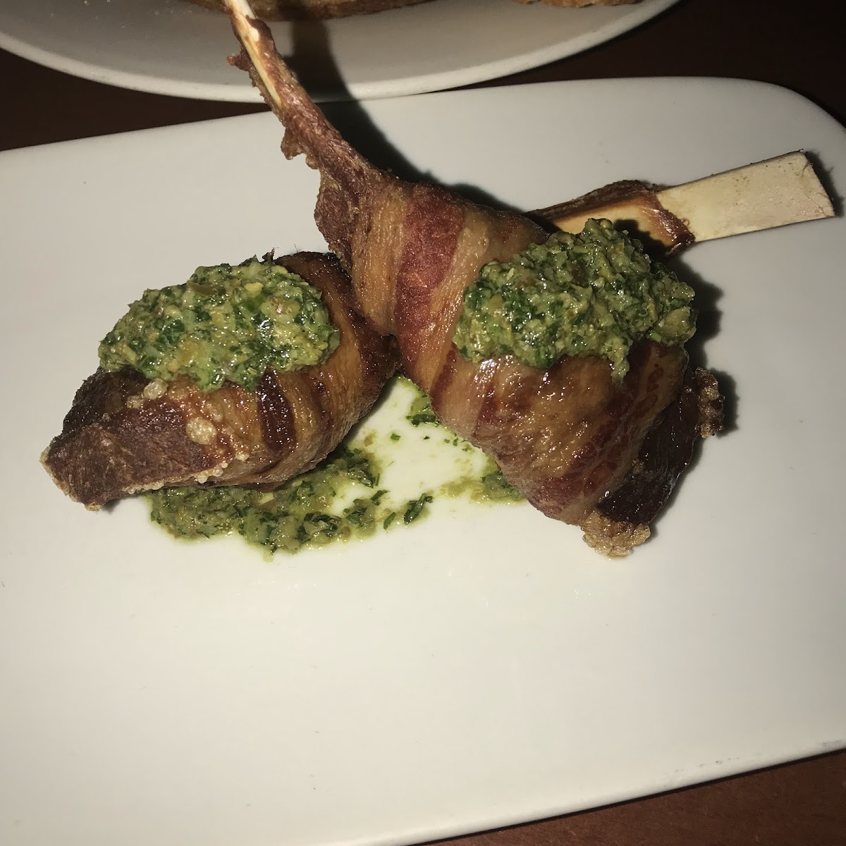 Bacon Wrapped Lamb Chops with Salsa Verde